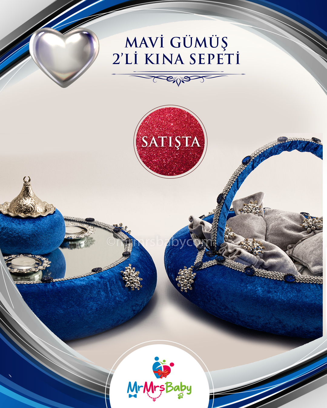 Mavi Gümüş Aynalı Kadife İkili Kına Sepeti, özel günlerinizi unutulmaz kılmak için sizi bekliyor. Gümüşün şıklığını ve mavinin zarafetini bir arada sunan bu tasarım, gecenize anlam ve ihtişam katacak!